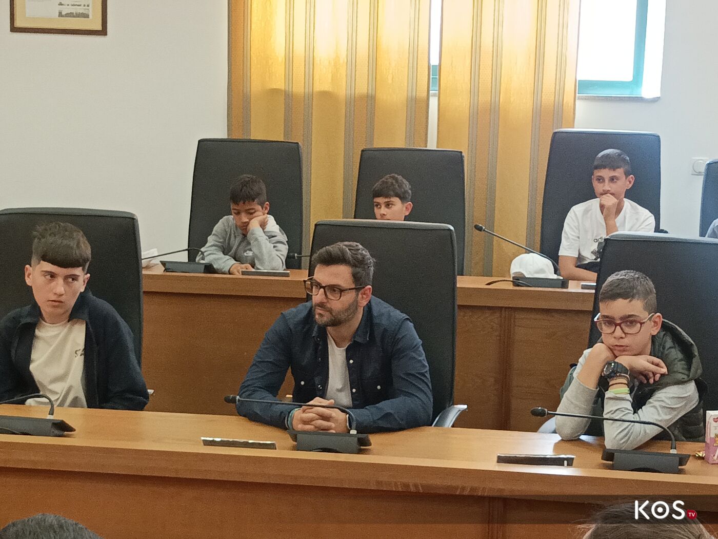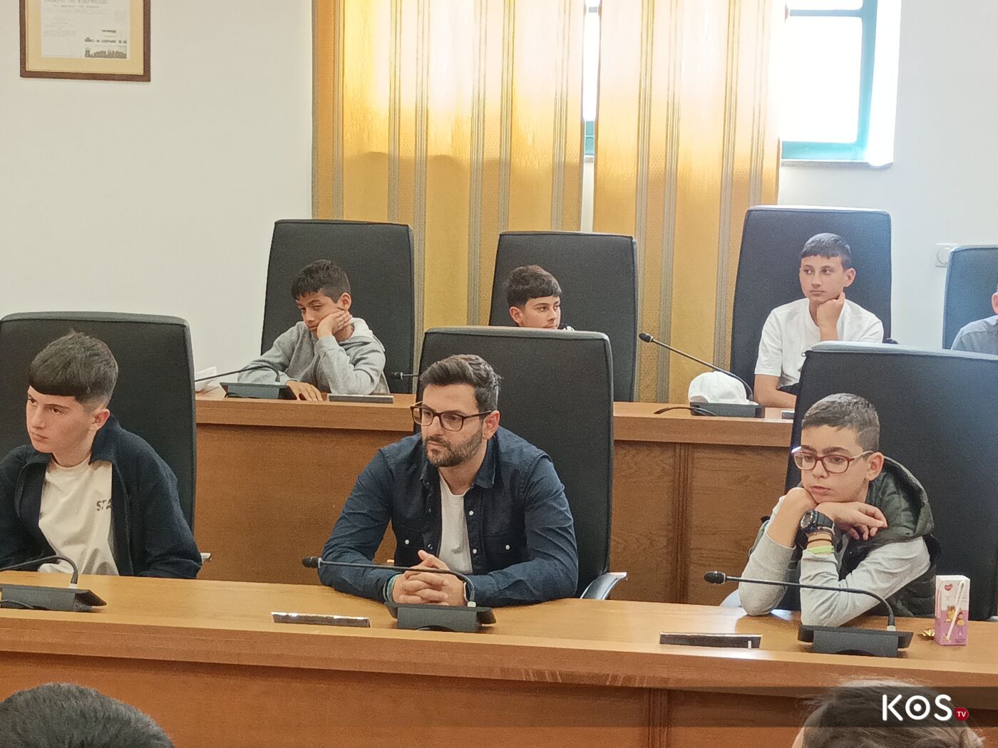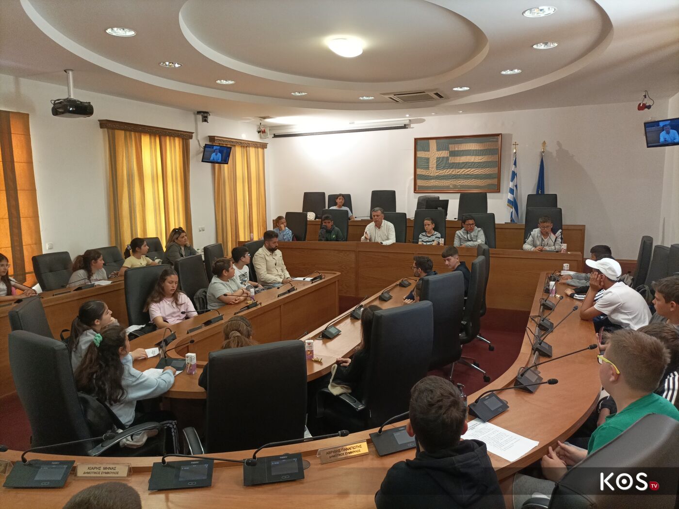 Οι μαθητές έθεσαν ερωτήματα στον δήμαρχο του νησιού στην αίθουσα του Δ.Σ. τα οποία απαντήθηκαν με χαρά αλλά και με χιούμορ από τον οικοδεσπότη.