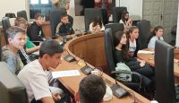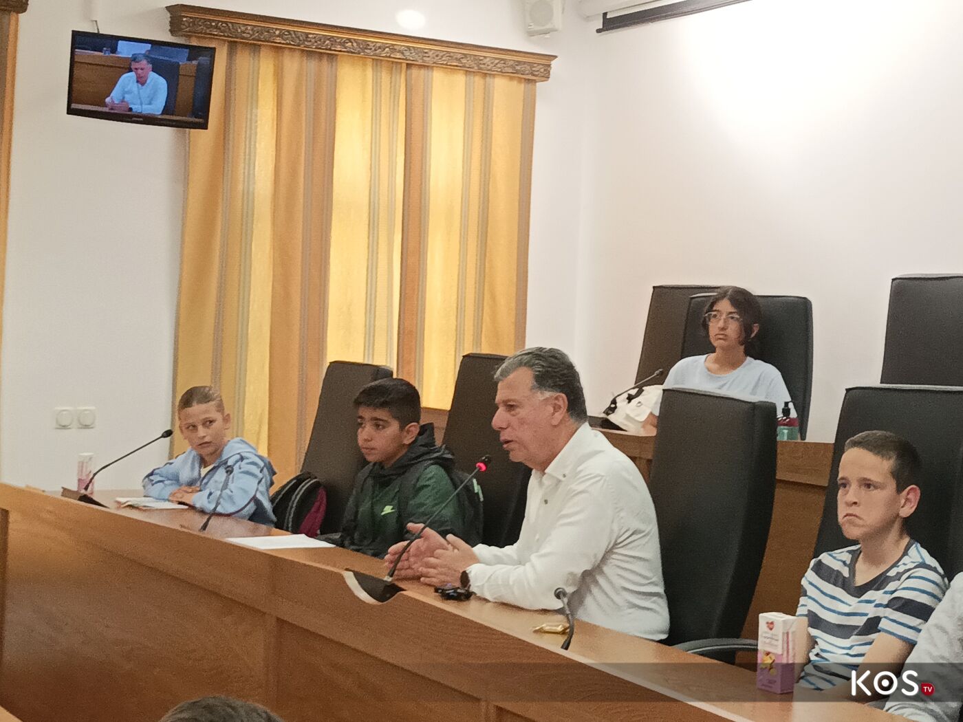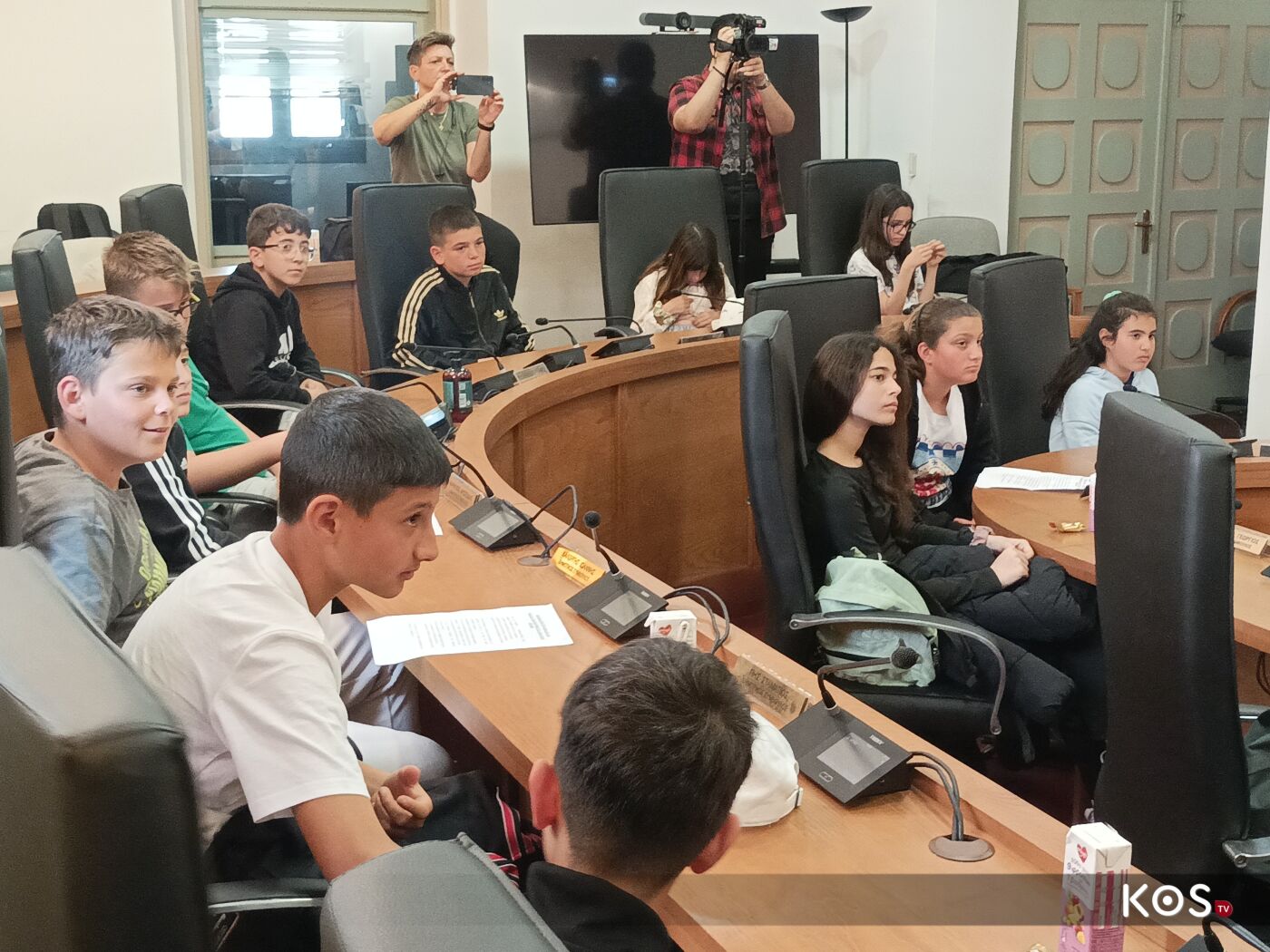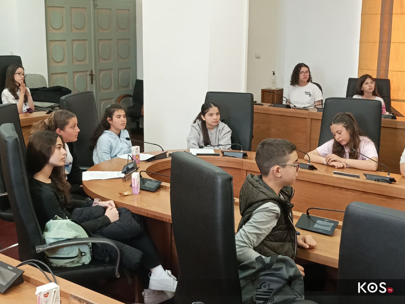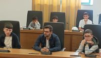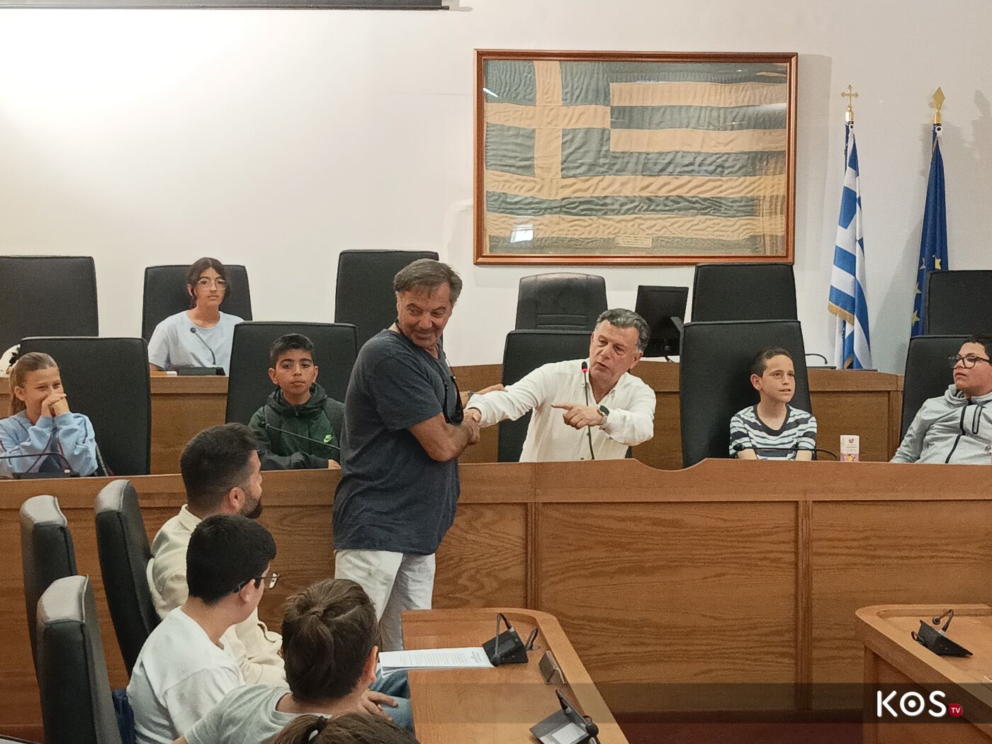 Οι μαθητές έθεσαν ερωτήματα στον δήμαρχο του νησιού στην αίθουσα του Δ.Σ. τα οποία απαντήθηκαν με χαρά αλλά και με χιούμορ από τον οικοδεσπότη.