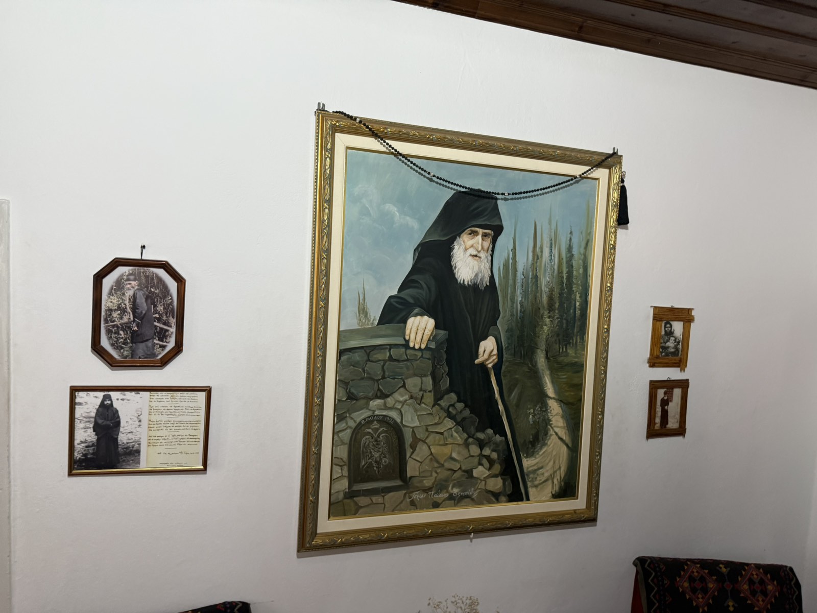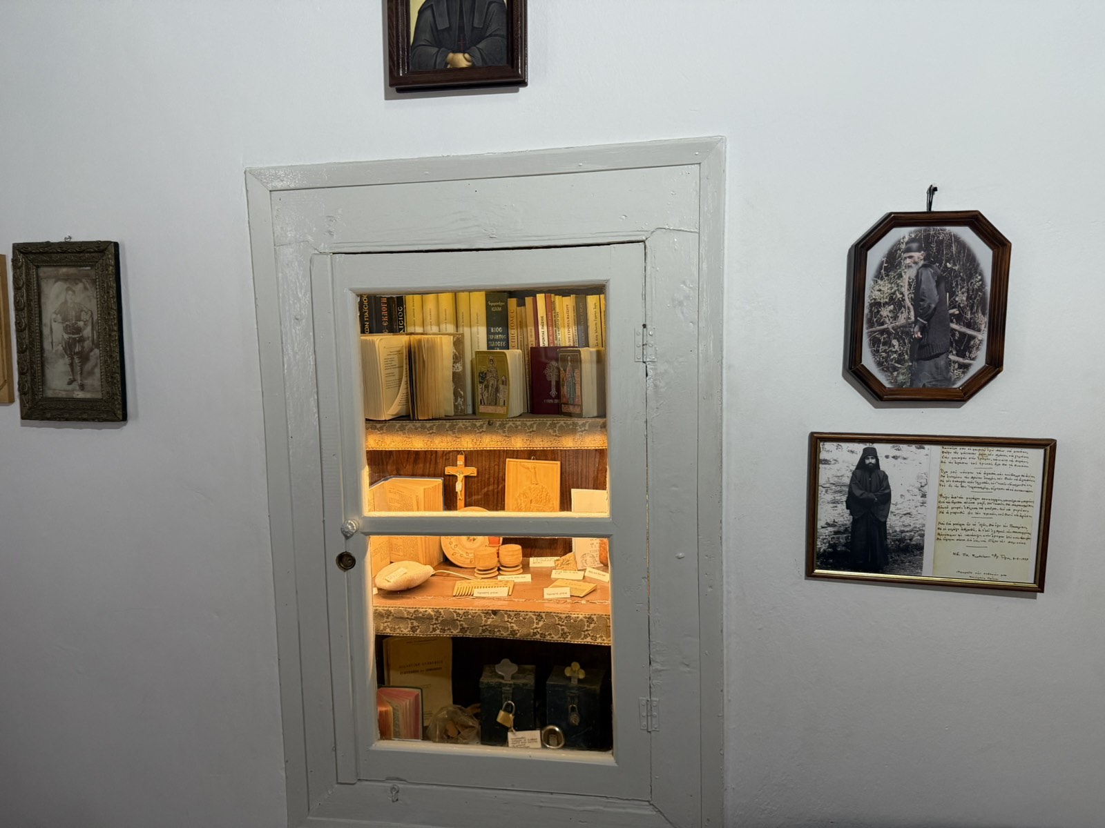 Μπαίνοντας κανείς στο σπίτι θα δει το χωλ, ένα μικρό καθιστικό κι ένα δωμάτιο. Εκεί κοιμόταν όλη η οικογένεια. Παντού είναι αισθητή η παρουσία του Αγίου. Τα προσωπικά του αντικείμενα σε μεταφέρουν σε ένα ταξίδι στο παρελθόν.
