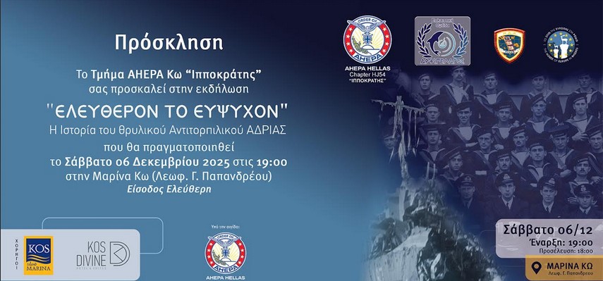 ΑΧΕΠΑ ΚΩ:…«Η παρουσίαση της ιστορίας του αντιτορπιλικού ΑΔΡΙΑΣ, στις 6 Δεκεμβρίου στην Κω»