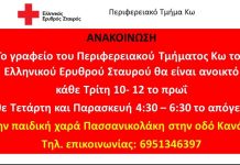 Περιφερειακό Τμήμα Κω Ελληνικού Ερυθρού Σταυρού: Ανακοίνωση λειτουργίας γραφείου
